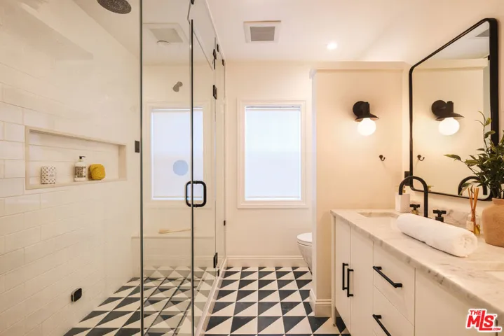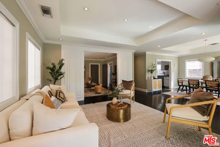 This beautiful light and bright remodeled 1920’s bungalow is hedged and gated on a tree-lined, quiet street conveniently located only blocks away from West Hollywood and the Hollywood Hills in the Sunset Square (HPOZ) area of Los Angeles. This special dream home has all the modern updates while maintaining significant character often lost when a home is remodeled. Features include an open floor plan conducive for entertaining, or just relaxing both inside the home or in the private front and rear yards. Additionally, it boasts a modern well-appointed kitchen with stainless steel appliances including Wolf stove/oven, three bedrooms (2 with walk-in closets) and one has the versatility as either an open den/media room or as a 3rd bedroom. The large primary suite at the back of the home with French doors leads out to a private Trex deck featuring a pergola with remote control to open and close to let light through and a private grassy yard with room for pool. The remodeled bathrooms are comprised of the primary with double sinks with a large fully equipped steam shower and guest bath has tub and rain shower and there is a separate laundry room inside the home. Parking for many cars in the driveway on the property. Close enough to enjoy the nearby shops (Bristol Farms), restaurants (Horses, El Compadre, Griddle Cafe), parks (Wattles Park, Plummer Park), hiking (Runyon Canyon) and nightlife, yet still quiet.