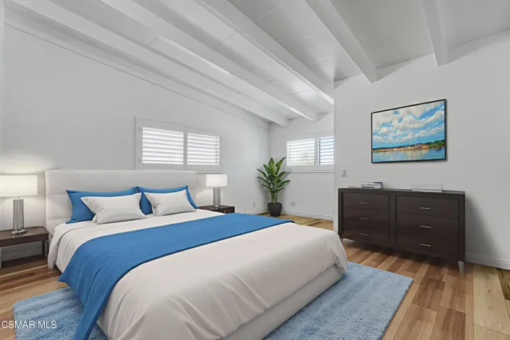 Upgraded 3-bedroom and 2-bathroom home in Thousand Oaks. The interior features vinyl-plank and porcelain tile flooring throughout providing a cohesive and durable finish. As well as plantation window shutters throughout. The layout includes a spacious living room, defined dining area, and an upgraded kitchen with quartz countertops, and contemporary cabinetry. Each bedroom is well-proportioned providing ample natural light and storage. Both bathrooms have been upgraded with modern finishes and materials. Central air conditioning and a gas furnace provide efficient year-round climate control. Fresh interior and exterior paint enhance the home’s overall appearance. The front yard features low-maintenance artificial turf, offering attractive curb appeal with minimal upkeep. The expansive backyard provides a outdoor area with potential for additional development. The lot size may possibly accommodate an Accessory Dwelling Unit (ADU), subject to local zoning and permitting requirements. Additional exterior features include a driveway and side yard access. The property is located in close proximity to major freeway access, offering added convenience for commuting and travel. Combining renovations, thoughtful upgrades, this home presents a well-balanced and functional living space.