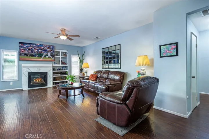 This beauty located on Hemet’s east side neighborhood, “Valle Vista,” checks all the boxes: single story, 4 bedroom, 3-car garage, RV parking, low taxes and…paid off solar! Featuring a lovely open concept floor plan with plank wood flooring, custom paint and window coverings along with a cozy fireplace in the living room, this home is ideal for entertaining and giving you plenty of room for all your furniture. The beautifully landscaped front yard makes this home the pride of the neighborhood and features loads of parking potential in the wide driveway with additional RV parking. The 4 bedrooms are spacious with room for large beds. The kitchen features custom quartz counters on the island and main cabinets with loads storage possibilities. The backyard offers a lovely patio cover with lots of privacy and has your citrus needs covered with several fruit trees including: navel orange, lime, blood orange and lemon. The solar panel system has been fully paid off so you’ll get the added bonus to lots of free electricity to lower your cost of living. The Valle Vista area is a quiet area east of downtown Hemet and features spectacular mountain views and easy access to shopping and schools. Hurry, this rare opportunity won’t last!
