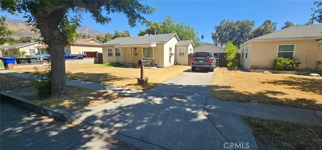 Welcome to this inviting 2-bedroom, 1-bath home located on a spacious lot in a prime California location—just minutes from CSUSB and with quick access to the 210, 215, and 18 freeways. This property is full of charm, character, and incredible potential! Step into the warm and welcoming family room, natural light pours in through large windows, brightening the home and enhancing its cozy atmosphere. The second family room is featuring vaulted ceilings with stunning exposed wood beams and a beautiful fireplace that creates the perfect space to relax, entertain or even be made into the ultimate master bedroom. With two other nice size rooms you will have plenty of space. Outside, enjoy morning coffee or evening sunsets on the beautiful front porch, and take advantage of the generously sized backyard—ideal for gardening, gatherings, or expanding your living space. A standout feature is the large workshop and detached garage—offering endless possibilities! Whether you’re a hobbyist, need extra storage, or are looking for an excellent ADU (Accessory Dwelling Unit) conversion opportunity, this space is ready to become whatever you dream it to be. Located near convenient shopping, dining, and outdoor recreation, this home combines location, charm, and flexibility—perfect for first-time buyers, investors, or anyone looking to customize their ideal living space. Don’t miss out—make this your dream home today!