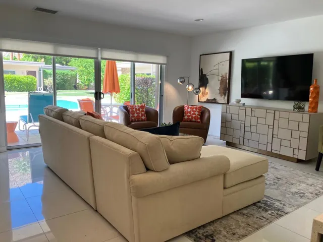 Mid-century design and modern comfort come together beautifully in this two-story condo, created by celebrated architect Herbert Burns. Set in the sought-after Historic Tennis Club neighborhood, the home is just moments from downtown Palm Springs with its lively restaurants, shops, galleries, and nearby hiking trails.Inside, the open-concept layout is ideal for entertaining, with the updated kitchen connecting easily to the dining and living areas. A striking glass-sided staircase leads upstairs to two en-suite bedrooms. The primary suite includes a balcony framing dramatic San Jacinto mountain views, while the guest suite offers European-inspired charm with its rooftop outlooks.Outdoors, a private patio looks onto the sparkling pool and spa, creating the perfect setting to relax or gather with friends. Additional highlights include off-street parking, in-unit laundry, and a complete renovation throughout. Move right in and enjoy Palm Springs living at its finest.