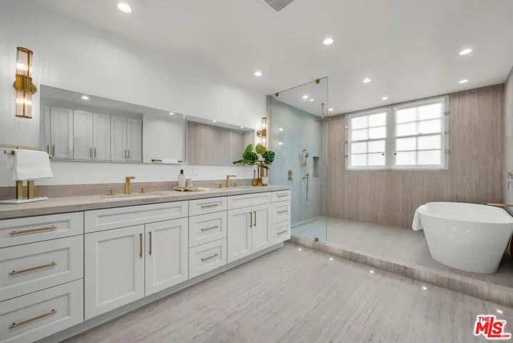 Extensively remodeled SMART home: three-bedroom, five-bathroom, plus housekeeper room and office. Just completed by the current owners for themselves, with no expense spared and every detail thoughtfully considered. Wonderful architecture, beautiful materials, and quality construction can be found in every corner. The open-concept layout highlights soaring double-height ceilings in the living room, enhanced by expansive windows that flood the space with natural light and offer tranquil canyon and mountain views. Designed for both entertaining and everyday comfort, the spacious living and dining areas flow effortlessly to a rear landscaped backyard. One en-suite bedroom is conveniently located on the main level, along with a flexible studio space featuring its own bathroom and direct access to the front patio. Upstairs, two luxurious suites await, including a primary retreat with a spa-inspired bathroom, soaking tub, generous closet space, and a separate private office. Two rooms have been added to the previous square footage. Residents enjoy access to resort-style amenities such as a community pool, spa, tennis courts, scenic hiking trails, and 24-hour security. The HOA provides comprehensive services including roof maintenance, exterior landscaping, barbecue areas, and full-time patrol along Canyonback Road.