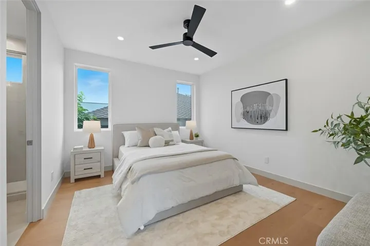 Welcome to this breathtaking new Modern beach home, where high-end finishes meet an open & bright floor plan in an A+ location. Nestled in the highly sought-after tree section, just a short stroll from the beach, parks, & Manhattan Village Mall with shops & eateries. As you step through the front door, you are greeted by an expansive open floor plan that seamlessly flows from the great room to the kitchen & family room to the spacious backyard with patio, making it an entertainer’s paradise. The inviting great room features custom built-in cabinetry, 2-story soaring ceiling, powder room, & main floor en-suite bedroom. The Chef’s kitchen is a culinary dream, boasting an expansive porcelain center island with breakfast bar seating, top-of-the-line stainless-steel Thermador appliances including a 6-burner stove with griddle and double oven, 60” fridge & freezer, 24” wine tower fridge that holds approximately 92 bottles, microwave drawer, & rift oak soft closing cabinets & drawers. Off the kitchen is the family room with fireplace, built-in custom cabinetry, & wired for surround sound. From the family room you can access the turfed backyard & patio with tongue & groove wood ceiling, infrared ceiling heater, perfect for alfresco dining during any season. Upstairs, you will find four luxurious ensuite bedrooms and a well-appointed, big laundry room with deep sink, and custom cabinetry. The sun-drenched master suite features a vaulted tongue & groove wood & beam ceiling, sliding glass doors opening to a balcony, and a custom walk-in closet with built-in cabinetry. The spa-like master bathroom includes dual sinks, & a separate soaking tub, an oversized shower with 3 shower heads. Additional amenities include French white oak 9.5” wide plank flooring, 8-foot doors, dual zone A/C and heat, solar panels & back-up battery, central vacuum system, wired for data (Cat6), wired for sound, windows prewired for automatic window coverings, low maintenance landscaped front & backyard, epoxy garage floor, & car charger.