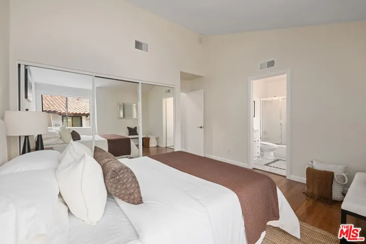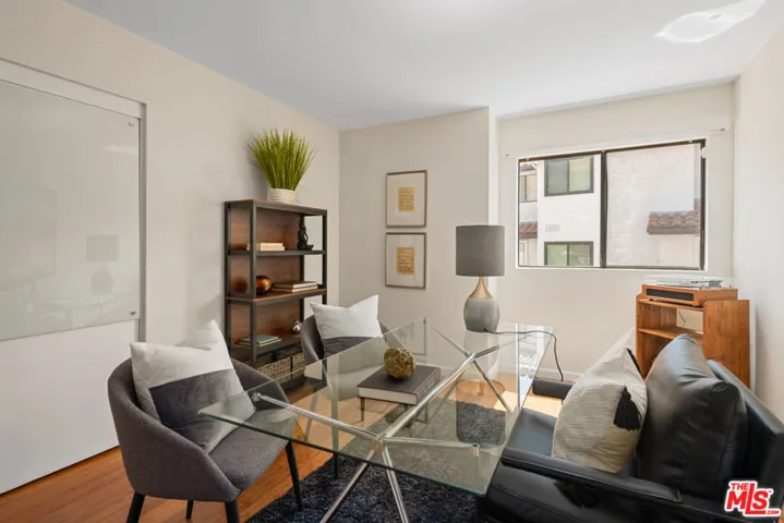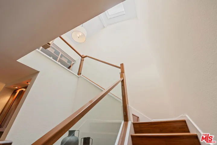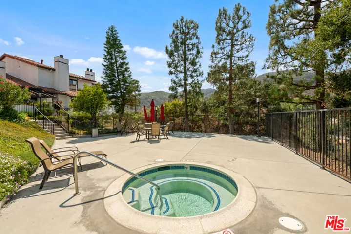 Step into this beautifully designed home featuring an inviting open floor plan that seamlessly integrates the living room with high ceilings, a striking rock stone fireplace, bamboo flooring and an al fresco dining area perfect for entertaining. The spacious dining room boasts elegant glass railings and a stylish bar that leads to a gourmet kitchen, complete with dramatic mood lighting, stainless steel appliances, granite countertops, and custom “pull out” shelving cabinetry. Enjoy the convenience of a built-in microwave, a deep “D” sink, two wine chillers, cozy breakfast bar that are all seated on beautiful ceramic floors. The main level features an exclusive private office or 3rd bedroom that offers complete privacy from upstairs life. A central skylight bathes soft light onto the stunning upstairs mahogany bookcase then gently pours that light down through the glass railed stairwell to the dining area. The luxurious primary bedroom is a true retreat, equipped with a thoughtful designed custom walk-in closet and private balcony that provides relaxing garden greenbelt and mountain views. The master bath features double sinks and large spa tub that offer a serene escape. The second bedroom, also on the upper level, includes an updated bath providing comfort and style. Additional highlights of this freshly painted exceptional home include bamboo wood floors, tankless water heater, epoxy floor in the garage and comprehensive security system. The outdoor space is equally impressive featuring a spacious entertainers patio with privacy hedging perfect for socializing with family and friends. Just up the path is a sparking swimming pool framed by a mountainous landscape featuring a spa, gym, and sauna for ultimate relaxation and recreation. Enjoy the security of a spacious 2 car garage with direct access and adjacent dedicated laundry area with ample cabinet space. There is additional utility in an under the home storage area access door. This residence also provides exclusive entry to a unique private park featuring dog-friendly zones, a playground, and expansive grassy areas, all located just minutes from the beach and picturesque local hiking paths that meander endlessly through the Santa Monica Mountains. Seize the chance to make this beautiful home yours! The fireplace is for decorative purposes only.