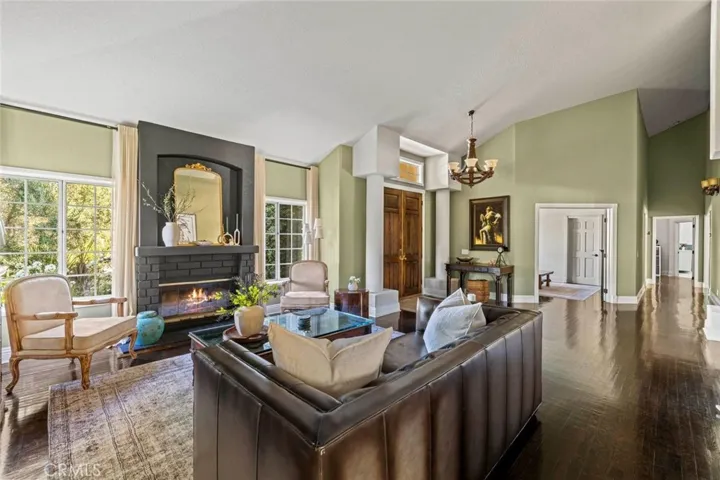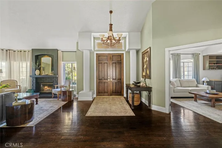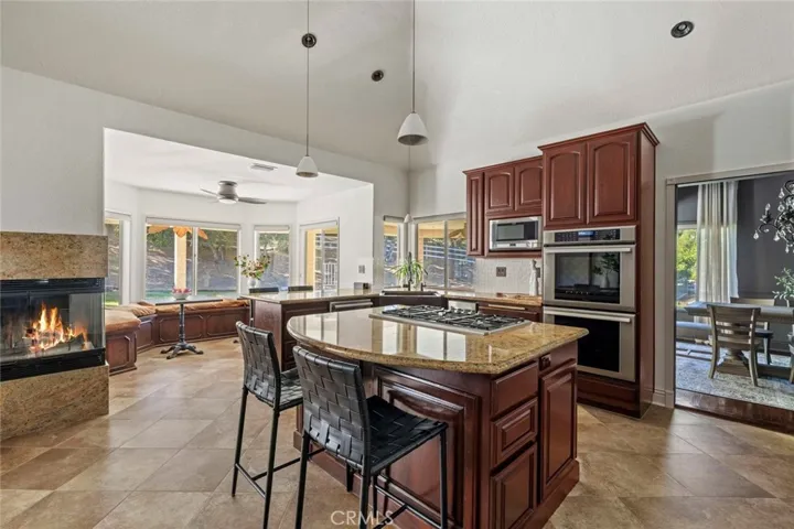 This single-story estate features four bedrooms including a den that can easily be used as a fourth bedroom, three full bathrooms, and a layout designed for both everyday living and entertaining. The home is filled with natural light and showcases high ceilings, wood floors, French doors, and three fireplaces that create a warm and inviting atmosphere. The kitchen is a true standout with stainless steel appliances, double ovens, a large island, hammered copper sink, bronze fixtures, and a charming breakfast nook with custom cabinetry. A formal dining room and a spacious family room off the kitchen provide the flow that today’s buyers want.