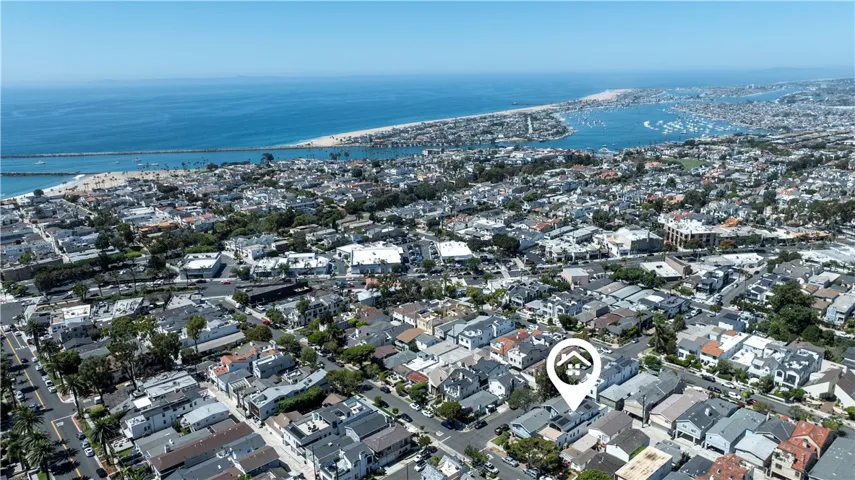 This brand-new 2025 custom home offers approximately 1,250 square feet of contemporary living in the heart of Corona del Mar Village. A private ground level entrance welcomes you to a charming patio with a built-in fire pit, perfect for relaxed evenings or intimate gatherings. The main living level flows seamlessly into a California loggia featuring a gas fireplace and TV hookup, connecting the gourmet kitchen, dining area, and living room for effortless indoor outdoor living. The chef’s kitchen is outfitted with Miele appliances, including a 6 burner range, a generous center island, European built cabinetry, and custom tile accents, ideal for entertaining or casual dining. A flexible space off the living area can easily convert into a third bedroom, office, or media room, offering versatile living options. A private elevator connects all levels, leading to the top floor where you’ll find a serene primary suite, a secondary bedroom, and an expansive rooftop deck. Designed for elevated entertaining, the deck features a full outdoor kitchen, wine fridge, sink, and a private hot tub, all framed by stunning sunset and city views. All bedrooms include custom built-in cabinetry, and the home is enhanced by curated lighting, designer hardware, elegant flooring, and refined millwork. Just steps from beaches, shops, and dining, this home blends modern luxury with coastal charm.