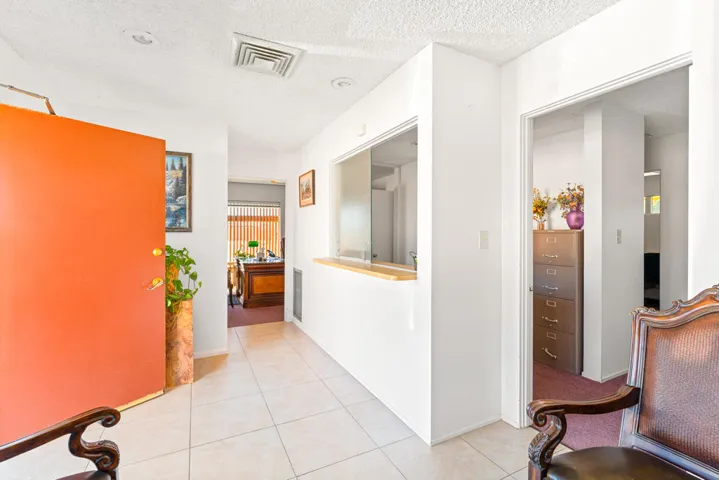 This commercial property available for lease is currently configured as a law office and offers flexibility for professional or medical use. Located in the heart of Yucca Valley the space includes a waiting room reception area three additional rooms an office with a closet and private access to the waiting room a storage closet with sink and a restroom. Ample parking is available on both sides of the building providing convenience for clients and staff. This property offers an ideal layout and location for establishing a professional office dental clinic or medical practice.