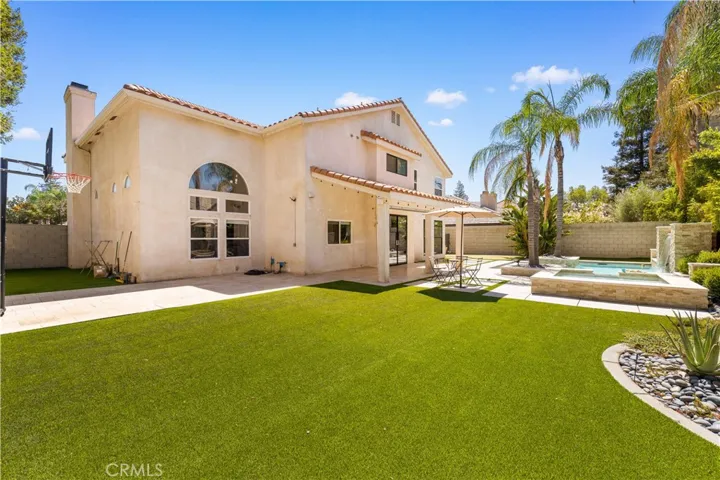 Step outside to your private backyard oasis — a newly remodeled pool and spa with waterfall feature, putting green, and expansive patio space designed for relaxation and entertaining.