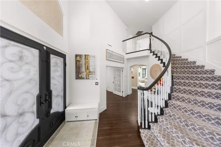 The chef’s kitchen shines with granite counters, a large island, and new cabinetry, opening to the family room with soaring ceilings and a cozy fireplace. The formal dining room and living room create the perfect flow for entertaining, and the impressive entryway features a 22-foot-high ceiling, adding a dramatic sense of openness and luxury.