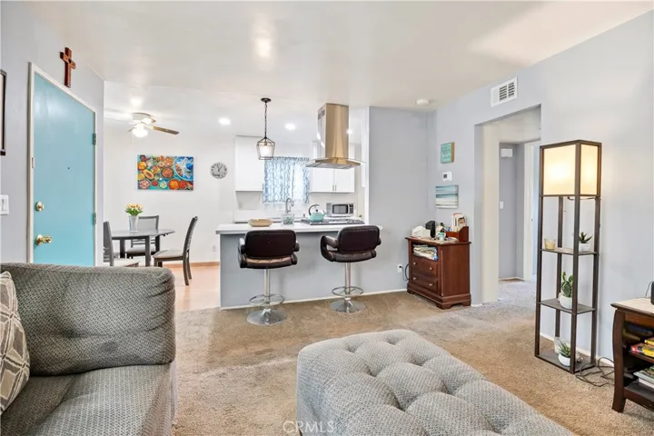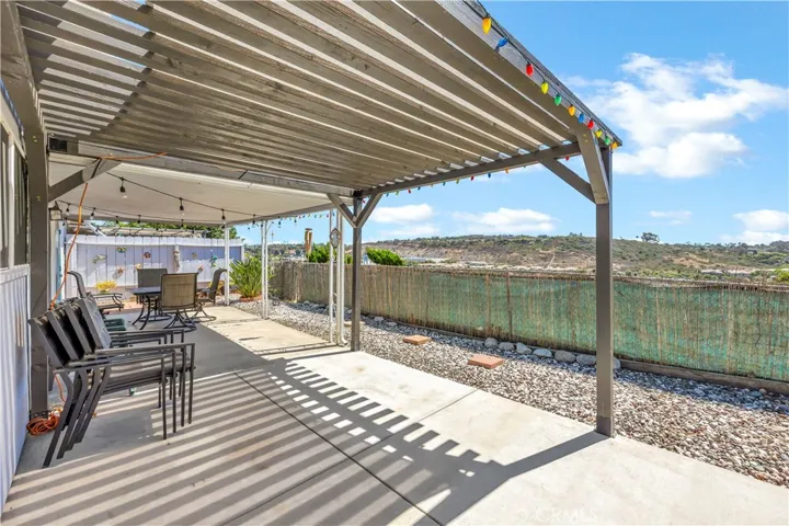 Charming and updated single-family 55+ residence located in the heart of Oceanside’s Costa Serena with NO HOA payments! This delightful home features 2 cozy bedrooms, 1 modern bathroom, an open-concept living area, and a stylish, fully equipped kitchen adorned with stainless steel stove, elegant gray cabinetry, and sleek countertops. The spacious living room seamlessly merges into the dining space, ideal for entertaining. Natural light floods the interiors, creating a warm and inviting atmosphere that complements the soothing color palette and plush carpeting throughout. Each bedroom offers comfort and tranquility, with the master bedroom boasting direct access to the covered outdoor patio. Outside, the extended patio provides a perfect setting for relaxation and enjoys picturesque views of the surrounding landscape—ideal for dining al fresco or enjoying cool evenings. Low-maintenance landscaping and a serene location add to the peaceful charm of this home. ****The home boasts a new roof, new pergola, new windows, new paint, additional concrete, laundry relocated to the garage, and a VIEW!!!! Enjoy proximity to local amenities, schools, and quick access to freeways for a convenient lifestyle. This property is a must-see for anyone seeking a comfortable and stylish home in Oceanside!