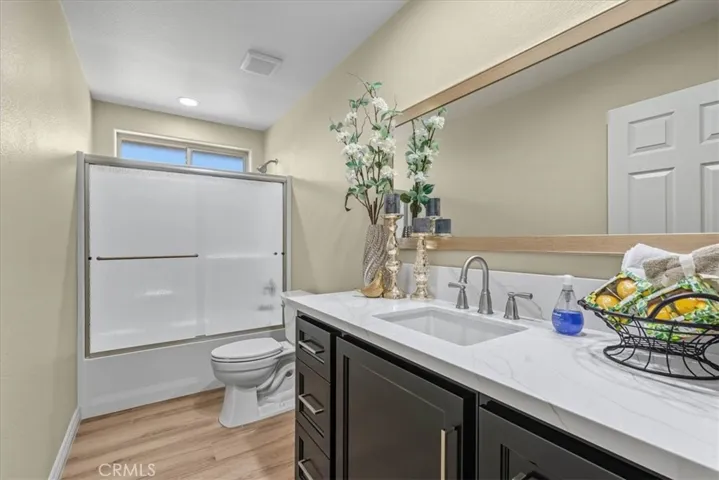 Upgraded bathrooms with Quartz countertops, a private laundry area, a double-entry door, and exterior light fixtures. 220V wiring is ready in the Kitchen, laundry, and water heater wall. Spacious 2-car garage with remote controls. This move-in-ready home offers everything you need and more! Don’t miss your chance to own this beautiful new home in Hesperia.