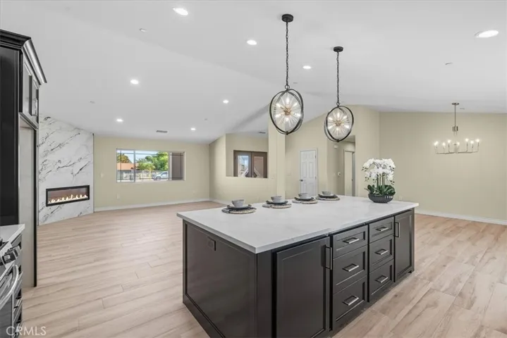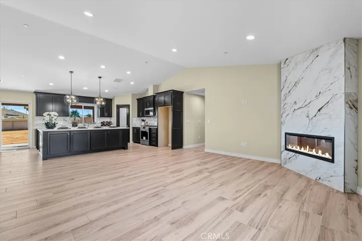BRAND-NEW HOME WITH AN ELEGANT DESIGN LOCATED IN A QUIET NEIGHBORHOOD OF HESPERIA!! It features 4 large bedrooms and 2.5 Baths. Energy-Efficient Upgrades – Includes PAID SOLAR PANELS, LED lighting, double-glazed low-energy windows, a tankless water heater, fire sprinklers, and high-quality insulation for maximum efficiency. Open Floor Plan with beautiful ceramic Tile floor throughout. Spacious Kitchen with an Oversized Island (9’x4′) featuring an eating bar and decorative pendant lights above. Custom cabinets, self-close doors and drawers, a Trash drawer, and a large pantry with shelves. Beautiful Quartz countertops, backsplash, and Stainless-steel appliances. Large Main suite with room for a seating area and cozy carpeting, an elegant master bath full of natural light with separate tub and shower, a large mirror, and a spacious walk-in Closet with custom shelves.