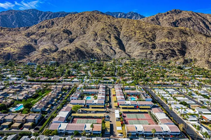 It’s all about the views and the location with this upper level 2 bed 2 bath condo. With some of the best sweeping views of the majestic mountains found in Palm Springs. Sandstone Villas is a secret oasis in South Palm Springs with tennis and pickle ball courts, multiple pools/spas and a community dog walking trail. This unit has a prime location in the community near two pools, a BBQ area and the fitness center. The unit has upgraded HVAC and generously sized bedrooms that have oversized closets with direct access to bathrooms.The two large patios are perfect to enjoy the valley’s spectacular sunsets. HOA fees are reasonable and include gas, trash, sewer, exterior maintenance and a reserved covered parking space. Best of all, it is not leased land. With a 7-day rental policy, and close proximity to downtown, this unit will make a great investment or long-term home!