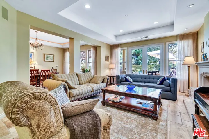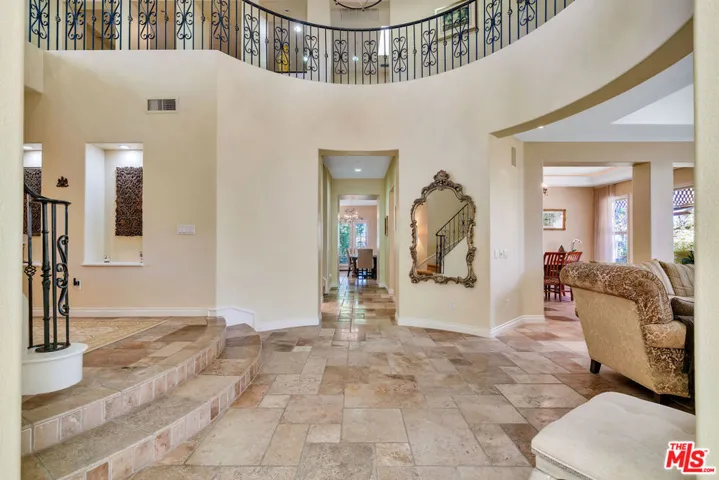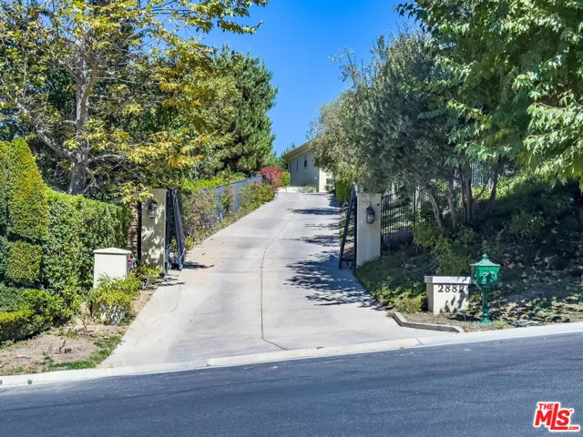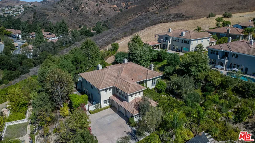 Step into charming Tuscany-inspired resort living with this 5,870 sq ft two-story estate, gracefully set on a 25,700 sq ft gated Signature Collection, designed for seamless entertaining, everyday comfort, and future growth. This 5-bedroom, 6-bath retreat offers gorgeous canyon/hills views, secured parking for 5+ vehicles, and unmatched privacy in one of Westlake Village’s most desirable pockets. Inside, soaring ceilings and expansive windows flood the home with natural light, creating a warm yet refined ambiance. The open-concept design on the first floor flows seamlessly from elegant formal living and dining rooms into an oversized family room ideal for gatherings of any size. A beautiful chef’s kitchen with premium appliances and custom finishes makes entertaining effortless. Also on the first floor is a dedicated home office with an en-suite bath, custom cabinetry, and a private entrance perfect for use as a guest suite. The upper level is anchored by a stunning primary suite, complete with two fireplaces, a remodeled spa-style bath, and total seclusion. Two additional en-suite bedrooms upstairs offer comfort for family or guests, Outdoor living is equally captivating, featuring two distinct backyard retreats: one with a Tuscany-style fountain, grapevine greenery, and serene seating areas; the other with a sparkling pool and waterfall, built-in BBQ, lounge with fireplace, and sweeping mountain views. This exceptional estate blends timeless Tuscan charm with modern luxury, offering both connection and retreat while delivering lifestyle, privacy, and long-term value.