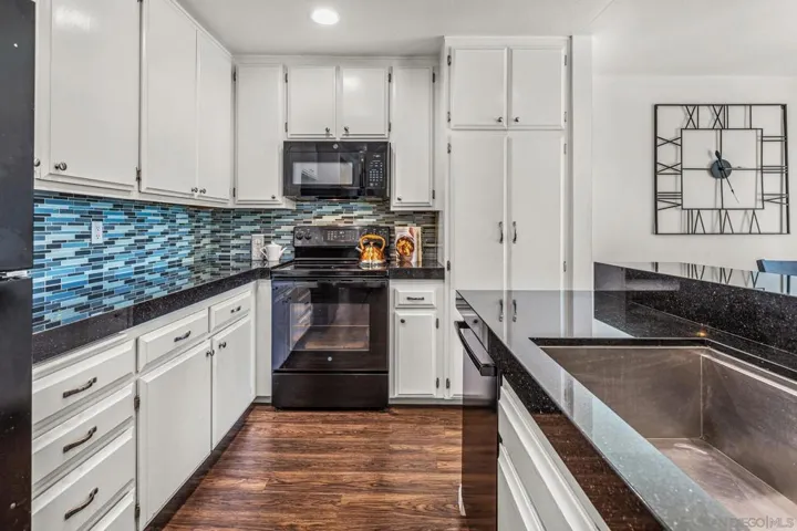 SELLER WILL PAY 6 MONTHS OF HOA! Great deal! 15k lower than model match that sold last month. Spacious & upgraded upstairs end unit with lots of natural light. The interior features large dual pane windows with accordion blinds, updated flooring, fresh paint, & wood burning fireplace with marble surround. Bathrooms updated with marble vanity counters, a remodeled primary shower, & replaced toilets. Central heat and a/c, along with stylish ceiling fans in the bedrooms & living room. The primary bedroom offers double closets, and both bedrooms are generously sized. The kitchen is upgraded with recessed lighting, marble countertops, subway tile backsplash, built in microwave, & all appliances included. Smart features include thermostat & doorbell. The private patio features a large storage closet with full sized laundry. Parking is convenient with two spots located directly in front of the unit, one covered with a storage cabinet. The HOA covers water, hot water, and trash. Community amenities include a pool, hot tub, tennis/pickleball courts, basketball court & gated community. The HOA also recently replaced the roof. The complex offers a pedestrian gate with direct access to a shopping center. Trader Joe’s close by plus easy freeway access. Spacious & upgraded upstairs end unit with lots of natural light. The interior features large dual pane windows with accordion blinds, updated flooring, fresh paint, & wood burning fireplace with marble surround. Bathrooms updated with marble vanity counters, a remodeled primary shower, & replaced toilets. Central heat and a/c, along with stylish ceiling fans in the bedrooms & living room. The primary bedroom offers double closets, and both bedrooms are generously sized. The kitchen is upgraded with recessed lighting, marble countertops, subway tile backsplash, built in microwave, & all appliances included. Smart features include thermostat & doorbell. The private patio features a large storage closet with full sized laundry. Parking is convenient with two spots located directly in front of the unit, one covered with a storage cabinet. The HOA covers water, hot water, and trash. Community amenities include a pool, hot tub, tennis/pickleball courts, basketball court & gated community. The HOA also recently replaced the roof. The complex offers a pedestrian gate with direct access to a shopping center. Trader Joe’s close by plus easy freeway access.