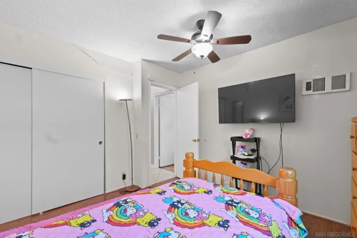 This well-maintained condo is located within a secure gated community and has been thoughtfully updated to offer a bright, functional layout. Inside, you’ll find a spacious floor plan filled with natural light, two full bathrooms, and a primary suite complete with a private bath and walk-in closet for added comfort and storage. The kitchen features granite countertops, a brand-new over-the-range microwave, and modern finishes throughout. Additional upgrades include recently replaced toilets, a newer water heater (only 2 years old), and a wall A/C unit complemented by ceiling fans for year-round comfort. Step outside to your private balcony, surrounded by lush greenery that creates a peaceful and secluded atmosphere. The balcony also includes a dedicated laundry closet with a washer, dryer, and extra storage space. Along with your assigned parking space, the community offers ample visitor and owner parking for added convenience. Enjoy the ideal location within walking distance of a shopping center featuring a grocery store, clothing shops, and plenty of dining options, from casual bites to everyday essentials. Perfect for first-time buyers, downsizers, or anyone seeking a move-in-ready home in a desirable San Diego neighborhood, this condo blends comfort, style, and convenience in one inviting package.