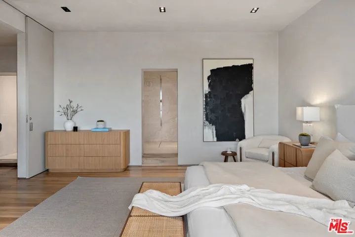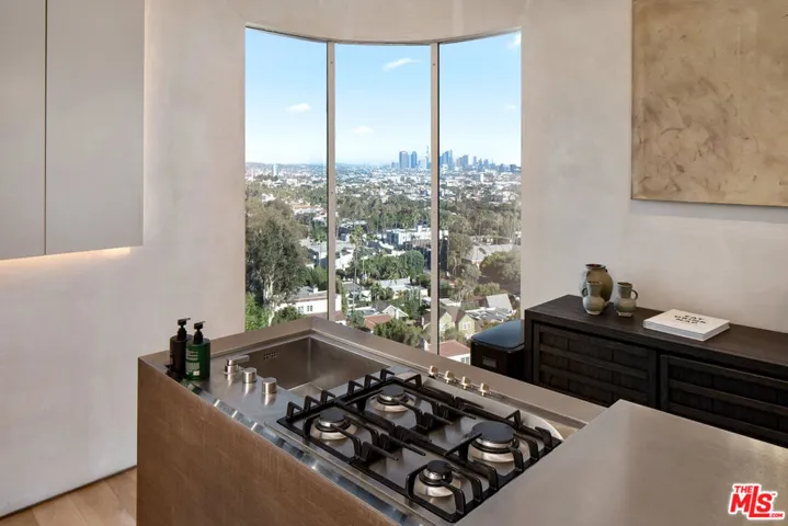 This privately-gated and former celebrity-owned contemporary hideaway sits above it all, with jetliner views stretching from Downtown LA to Century City and out to the ocean. Framed by a dramatic pivot door, the designer-done home opens to soaring ceilings, smooth Venetian plaster, hardwood floors, and sun-drenched interiors that exude a sophisticated and organic feel. The main level showcases a spacious formal living room that flows seamlessly into the dining area and chef’s kitchen, designed for both effortless entertaining and everyday living. The relaxing primary suite offers a travertine-cladded spa-like bathroom with walk-in shower and separate soaking tub, a picture window framing endless panoramic vistas, and an oversized walk-in closet. Two additional guest bedrooms are replete with en-suite baths and private balconies, with an additional flexible space that can serve as a screening room, office, or fourth bedroom. Outdoors, this estate takes entertaining to the next level with a newly added outdoor kitchen/BBQ, in-ground spa, sauna, outdoor shower, and dramatic outdoor fireplace with built-in seating providing the perfect stage for al-fresco dining, sunset gatherings, or simply unwinding above the city lights. With a prestigious history, unmatched style, and coveted location just moments from the Sunset Strip and West Hollywood, this residence is truly a private retreat set against one of the most breathtaking backdrops in Los Angeles.