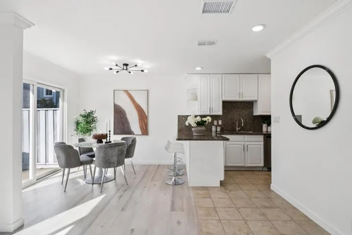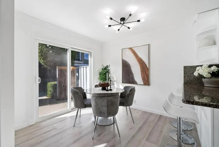 Modern Comfort Meets Peninsula Convenience | Beautifully updated two-story townhome in Redwood City, blending modern design with everyday comfort. Move-in ready with fresh paint, new luxury vinyl plank flooring, and an open layout that flows effortlessly from the bright living room with gas fireplace to the dining area and private front patio. The updated kitchen features stainless steel appliances: new stove, new hood, new refrigerator, new sink, and freshly painted cabinetry. Half bath completes the main level. Upstairs, the spacious primary suite incl. walk-in closet, and updated bath with double-sink vanity, new faucets, new mirrors, and new lighting. Two additional bedrooms on the opposite side of the stairs incl. floor-to-ceiling closet sliding doors, shares a updated full bath. Dual-pane windows. Central heating and air conditioning. In-garage laundry. Finished 2-car garage with extra storage. Ideally located in a quiet, well-maintained community, close to Caltrain, Hwy101/280, company shuttles nearby. Enjoy vibrant downtown Redwood Citys dining, shopping, and entertainment. As well as nearby Woodside trails, parks, and open space, the perfect balance of urban convenience and natural beauty. Experience updated living and effortless lifestyle on the San Francisco Peninsula.