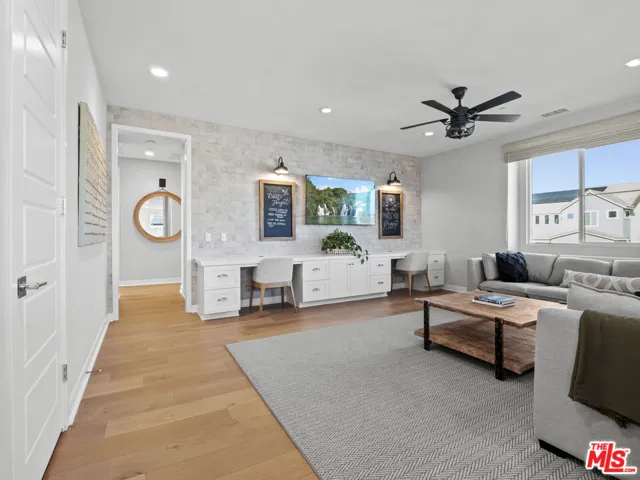 Stunning Former Starling Model Unobstructed View Home w/ 5 Beds, 4 Baths a thoughtfully designed floor plan w/ hardwood floors, premium window and wall treatments throughout, custom paint, a downstairs bed & bath, a bonus room, office, & loft, owned solar, security cameras, custom millwork throughout, and over $300K in upgrades. Flowing effortlessly into the dining and living areas, the kitchen showcases a large center island, GE Cafe white & bronze appliances, Insta-hot water, a walk-in pantry, pendant lighting, & upgraded backsplash. The living room is highlighted by a sleek linear fireplace w/ a wood mantel & a sliding glass door that opens directly to the covered outdoor patio for that quintessential California indoor-outdoor lifestyle. Adjacent to the living area is a bonus room, currently styled as a club room w/ pool table, built-in cabinetry, GE Cafe beverage refrigerators, custom wall treatment, & a slider leading to the backyard w/ breathtaking views. The first level also offers a private guest bedroom w/ tongue & groove feature wall, crown molding, and its own bathroom w/ walk-in shower & chevron tile, an office w/ custom built-ins, a powder room w/ floor to ceiling arabesque mosaic tile, & a convenient mudroom round out the first floor. The grand staircase features panel molding leading you to the spacious & bright loft, complete w/ double built-in desks, & another custom wall treatment. The laundry room includes a utility sink, floor to ceiling cabinets, and quartz counters. The primary suite features gorgeous views, a coffered ceiling, & a walk-in closet, along with a primary bathroom showcasing dual sinks w/ quartz counters, a huge soaking tub, a glass-enclosed walk-in shower, & additional linen storage. Two additional well-sized bedrooms w/ unique wall treatments and views, along w/ a full bathroom w/ dual sinks, complete the upper level. Additional highlights include smart fans & lighting, plantation shutters, built-in sound system, and tons more. Outside, enjoy a beautifully landscaped, drought-tolerant front & backyard w/ turf, mountain views, a firepit, covered patio, & ample side yard space. The garage highlights built-in cabinetry, epoxy floors, as well as an EV charger. Residents of Skyline, have access to multiple parks, resort-style pools, a fitness center, a recreation center, scenic trails & more, and a new elementary school slated to be completed in 2028. Conveniently located just minutes from Starbucks, restaurants, grocery stores, dry cleaners, and more. Don’t miss your chance to make this incredible home yours! Home is also for Lease at $8500 a month.