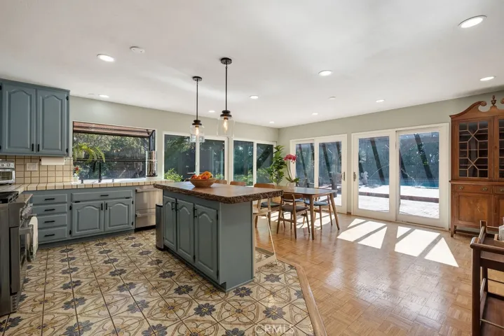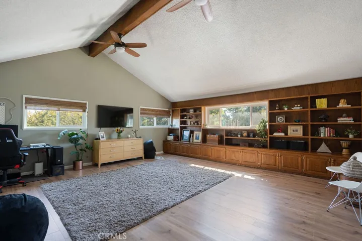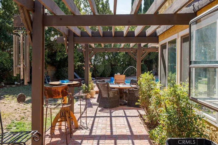 This beautifully updated Valencia home is designed for comfort, convenience, and California living. Offering 5 bedrooms and 3 full baths across 2,289 sq. ft., it sits on a generous 10,256 sq. ft. lot with a sparkling pool and plenty of outdoor space. The bright, open layout is highlighted by vaulted ceilings, a cozy fireplace, and versatile living areas perfect for entertaining or relaxing. The kitchen features ample cabinetry, quartz-style counters, and easy flow to dining and family spaces, while multiple sliders and a covered patio make indoor-outdoor living effortless. Upstairs bedrooms provide plenty of flexibility for families, guests, or a home office. The primary suite includes direct access to outdoor space, with potential to create a sunny retreat or café-style nook. Practical features include a 2-car attached garage, fenced yard with shed, and central cooling. The neighborhood of Valencia is known for its rolling terrain, family-friendly atmosphere, and excellent schools within the William S. Hart Union High and Newhall School Districts, including Foothill High. Community highlights include parks, shopping, dining, and convenient freeway access. This is a rare opportunity to own a spacious home with both character and potential in one of Valencia’s most sought-after areas.