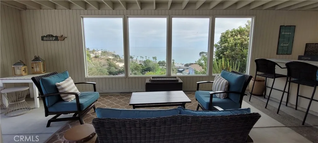 Welcome to your new, completely renovated seaside retreat where every day feels like a vacation. The first-floor 2-bedroom, 1-bathroom spacious condo is tucked away on a quiet cul-de-sac just above the world-famous Montage Resort and pristine South Laguna beaches. New paint and flooring runs throughout the entire condo, enhancing the clean, modern feel. The open-concept, upgraded kitchen features a custom stainless steel backsplash, sleek stone counters, and top-of-the-line Fisher & Paykel stainless steel appliances, including a 5-burner gas stove—perfect for culinary enthusiasts. Experience the ultimate in coastal living with peek-a-boo ocean views from both bedrooms, perfect for waking up to ocean breezes and watching breathtaking sunsets. Both bedrooms offer custom closets with built-in storage, and dedicated workspaces, making this space both beautiful and highly functional. The bathroom has been completely renovated to include a new dual sink vanity, polished porcelain tiled walls, and a walk-in shower with a bench and barnyard-style glass door enclosure, elegantly accented with modern brushed gold fixtures. Step outside to your large, private gated patio, featuring flagstone hardscape, a bubbling tropical fountain, and lush surroundings—an ideal setting for outdoor entertaining or just relaxing. The private community deck upstairs offers panoramic views of the ocean. Its a great place to enjoy your morning coffee or to relax at the end of the day watching the sunset. The pool and clubhouse offer gorgeous views of Aliso Creek Beach and Catalina and another great place to entertain and enjoy the beautiful surroundings. A one car detached garage is included and community laundry is steps away. The association pays for water, trash, insurance, and the monthly $22 land lease fee. There are 32 years remaining on the land lease. Experience the best of South Laguna Beach living with stunning ocean views, upgrades throughout, and a peaceful location just above some of Southern California’s most beautiful beaches, best restaurants and exquisite shopping. Don’t miss this fantastic opportunity to own a slice of paradise!