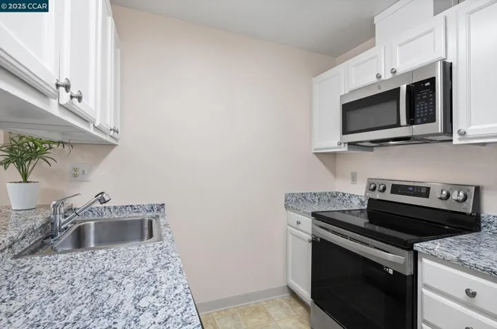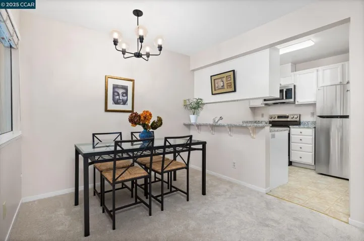 At the heart of this Concord condo is a refreshed kitchen featuring granite counters, ample storage, and all recently replaced stainless-steel appliances. The open layout connects to the dining and living areas, where sliding glass doors extend the space to a rebuilt deck for outdoor living. Two bedrooms include a spacious primary suite with a walk-in closet and a vanity with sink. The full bathroom offers a tub-shower combination, extended counter space, and cabinetry for storage. Additional updates include dual-pane windows and plush carpeting. Extra storage is provided with both a hall closet and a patio closet, while the HOA offers a pool and laundry facilities. Minutes from downtown Concord, Toyota Pavilion, Mt. Diablo, parks, and schools, this home blends thoughtful improvements with everyday convenience.