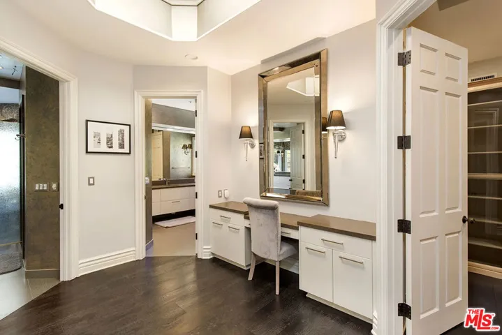 Set behind the gates of the exclusive Mulholland Estates, this grand residence combines timeless European architecture with resort-style living now vacant, remodeled, and available for immediate showings. From its commanding faade with stone detailing, columned entry, and manicured grounds, to sweeping lawns and hillside views, this home stands as one of the community’s most impressive offerings. Inside, soaring ceilings and light-filled interiors showcase elegant proportions and a refined, neutral palette. The formal living room is designed for both comfort and entertaining, with expansive windows, French doors opening to the pool terrace, a stately fireplace, and a sleek wet bar. The remodeled kitchen blends style and function with Caesarstone counters, designer glass tile backsplash, Viking 8-burner range, built-in oven and steamer, Sub-Zero refrigeration, and a generous breakfast area overlooking the gardens. The home’s thoughtful floor plan features four bedrooms upstairs, including a dramatic primary suite with dual walk-in closets, dual bathrooms, a sitting lounge, and a two-sided fireplace. A fifth bedroom is located downstairs, while a versatile bonus room provides the option for a sixth bedroom, gym, or creative space. Additional highlights include a professional recording studio, recreation room with direct garage access, and seamless indoor-outdoor flow. The private backyard is a true retreat, complete with pool, spa, gazebo, lush landscaping, and an expansive lawn. A rare opportunity to acquire a beautifully remodeled estate in one of Los Angeles’ most prestigious guard-gated communities.