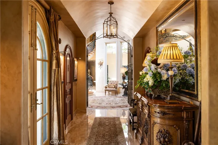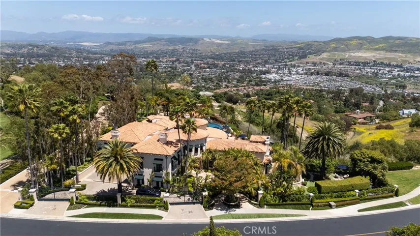 The Heart of Bear Brand Ranch. An unrivaled estate set on nearly an acre of gated privacy, surrounded by untouched land and rolling hills, 19 Old Ranch Road is a rare jewel in the prestigious enclave. Masterfully designed in timeless Spanish architectural tradition, the residence is enveloped by mature, lush landscaping—towering trees, vibrant gardens, and meandering pathways that evoke the romance of European countryside estates or the glamour of Old Hollywood. With commanding views stretching across the Capistrano Valley, Saddleback Mountains, and out to the Pacific Ocean and coastline, this sanctuary offers an unparalleled sense of serenity and grandeur. Expertly crafted, passionately designed, and meticulously maintained, the home features expansive grounds that invite refined indoor-outdoor living. A stunning resort-style pool with a cascading waterfall takes full advantage of the sweeping vistas. Anchoring the outdoor experience is a fully appointed cabana complete with a fireplace, bar, and lounge—an entertainer’s dream and a private escape in one. Inside, the residence offers a flowing, functional floorplan with 6 expansive and curated bedrooms, each with it’s own en-suite bathroom seamlessly blending elegance with comfort. The dramatic great room to the outdoor spaces through custom steel French door, while the formal living space showcases a statement fireplace, stunning seating arrangements, offering a sense of refined luxury. A warm, inviting family kitchen and an intimate dining room with coffered ceilings connect to a private courtyard adjacent to a palm-filled atrium. The main-level hosts a sumptuous primary-bedroom suite offering views, privacy and elegance with spa-like steam shower, soaking tub, and custom closets . A secondary guest retreat, a formal office, a fitness room, and multiple entertainment spaces. Upstairs, four additional guest suites offer unique features, including a private casita with separate entrance, kitchenette, and living area—ideal for multi-generational living or guests. Additional rooms include a playroom, bonus lounge, and two bedrooms with charming Juliet balconies. Thoughtful details abound: a custom wine cellar, sauna, pool bath, and hidden garden paths that lead to tranquil seating areas and moments of discovery. An elevated in-ground spa, romantic fountains, private firepit terrace draped by mature pepper trees, and dramatic gated porte-cochere with four-car garage add to the home’s irresistible ambiance.