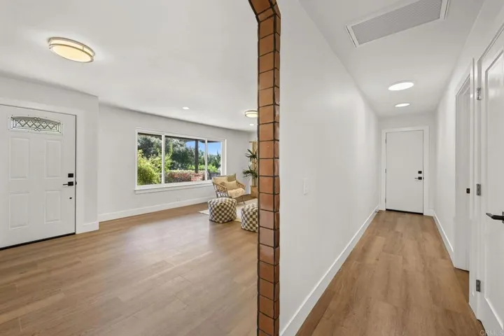 Privately tucked behind its own gated entry, this fully fenced single story ranch home offers both seclusion and convenience, with easy freeway access and Felicita Park just outside your doorstep. Set on nearly three quarters of an acre of flat, usable land, the property balances timeless charm with thoughtful updates. Inside, original tile archways and a cozy fireplace create a welcoming atmosphere, while the open concept layout allows for effortless flow between living spaces. The kitchen is a true highlight, featuring high end Frigidaire Professional appliances and pull out shelving that makes organization simple. It is a space equally ready for a quiet morning coffee or lively gatherings with family and friends. The private primary suite feels like a retreat of its own, complete with a luxury en suite and direct access to a secluded patio where you can enjoy fresh air and quiet moments to start or end your day. Two additional bedrooms and a secondary bath with dual sinks provide comfort and functionality for everyone. The home also features a fully finished two car garage that adds both polish and practicality. Just off the garage, a climate controlled office provides the perfect space for work, hobbies, or storage, while an in ground safe offers additional peace of mind. Outdoors, mature shade trees and fruit trees frame the landscape, while the chicken coop adds a playful touch of country living. If you have ever dreamed of collecting fresh eggs in the morning, the coop is already here to make that dream a reality. With owned solar keeping energy costs low, plenty of room to spread out, and the secondary access point perfectly suited for a future ADU, this property offers endless possibilities. This home blends privacy, character, and convenience in one of Escondido’s most desirable locations, where everyday living feels both practical and a little magical.
