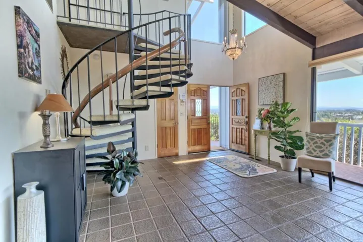 Ocean View Santa Cruz, breathtaking views of the Santa Cruz skyline, and expansive panoramic unobstructed Monterey Bay full ocean view extending to Moss Landing, Monterey, and beyond. Captivating your attention are the Giant Dipper, sailboat races, and colorful scenes of Santa Cruz. Escape to your private hideaway tucked into the upper Westside. A freshly painted exterior, gated electric entrance, and driveway with custom exterior lighting make a striking statement. This iconic home boasts a great room filled with abundant natural light, floor-to-ceiling windows, sliding glass doors, and high ceilings. Discover the grotto kitchen with an island gas cooktop and formal dining room. The spiral staircase leads to 4 rooms and 2 full bathrooms. A double-sided fireplace is the focal point of the cinema/play or billiard room, 1/2 bath, bar service room, and exclusive wine cellar. The sliding glass doors lead to the pool, hot tub, sauna, and patio. BBQ, entertain, or relax while soaking in the ocean view. 2 car garage, pool house, garden, shed, security system, air conditioning, attic. Walkway bridge to downtown, shops, restaurants, Holy Cross School, Pognic Open Space hiking and biking trails, UCSC 3 min, Surfing 8 min, downtown 4 min, Urgent care 4 min, access Highway #17, Highway 1.