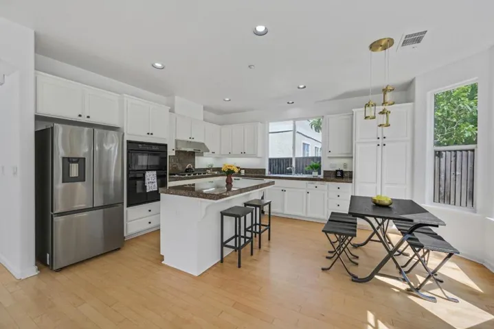 Beautifully updated Pulte-built home in sought-after Mayhews Landing! This 4-bedroom, 3-bath residence features soaring ceilings, abundant natural light, and a versatile layout perfect for modern living. The main level offers a bedroom and full bath ideal for guests or multigenerational living. The kitchen includes granite countertops, a center island, stainless steel appliances, and a sunny breakfast nook with views of the private backyard. The family room with fireplace and breakfast nook overlook the private backyard, creating a seamless indoor-outdoor flow. Upstairs, a loft offers flexible space for a home office or lounge, while the oversized primary suite includes a walk-in closet and dual-vanity bath. Additional highlights include hardwood and tile flooring, a downstairs laundry room with electric and gas hookups, and an attached 2-car garage. Northeast-facing and close to Dumbarton Bridge, Hwy 84/880, Challenger School, Meta, Lucid, and tech shuttles. Backing to open space, the community enjoys a tranquil setting near the Newark Slough and Don Edwards San Francisco Bay National Wildlife Refuge, with scenic trails and wetlands just minutes away.