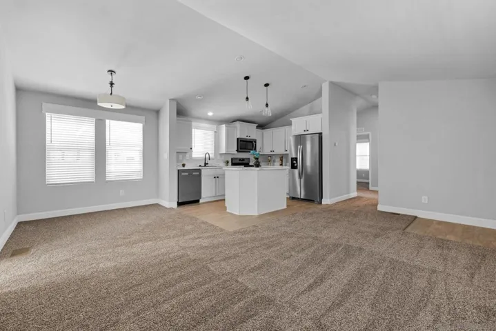Priced to sell, this brand new 3-bedroom, 2-bathroom manufactured home can be yours! With the split floor plan, it is ideal for families with kids or roommates that want privacy. Upgraded stainless appliances in kitchen, includes: built in microwave, dishwasher, sink, side-by-side refrigerator w/water & ice dispenser. The kitchen offers modern white shaker cabinetry w/black hardware and pull-down faucet. Cook with ease in this convenient easy to maneuver through kitchen with an island and open concept to the living room. For the privacy you dream of, the primary bedroom is located on one side of the house with it’s own bathroom, that offers a walk-in shower. While bedrooms 2 & 3 are on the opposite side of the home that offers a guest bathroom with shower/tub combo. Both bathrooms offer elongated toilets. No tandem parking, this carport offers convenient side-by-side parking. Nestled in the family friendly Westward Ho Manor, an all-ages community, Splash around and have fun in the sparkling swimming pool on sunny days. The park generously offers a spacious clubhouse, available for you and your family. Centrally located in El Cajon (on the border of Lakeside and minutes from Santee- shopping centers, schools, parks, dining, and freeways are right at your fingertips. All of San Diego County, including beaches and mountains are minutes away either east or west of your new home. Perfect if you’re starting a family, wanting your first home, or ready to retire, this is the place you’ve been looking for!