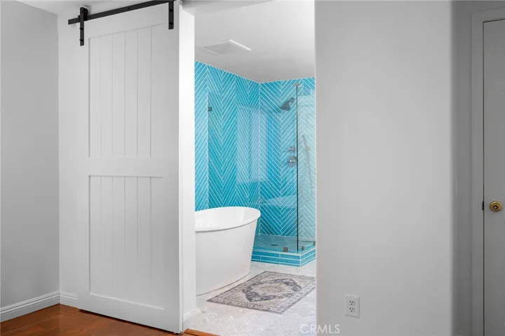 Upstairs you’ll find four spacious bedrooms and two full baths. The primary suite is a true retreat with walk-in closet, and a luxurious remodeled bath that includes double sinks, soaking tub and separate shower. The primary suite shower features Carolina Bay polished ceramic turquoise tiles and the bathroom flooring is honed Bianco Carrara marble herringbone mosaic tile. The upstairs laundry room is centrally located for convenience.