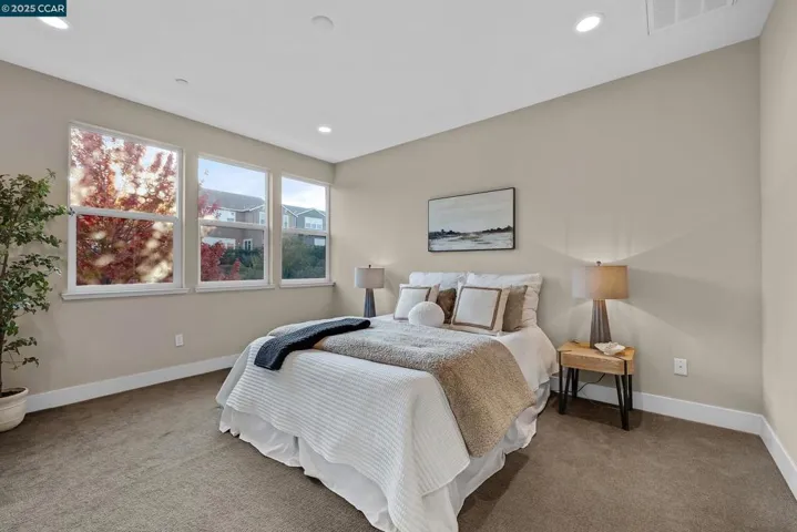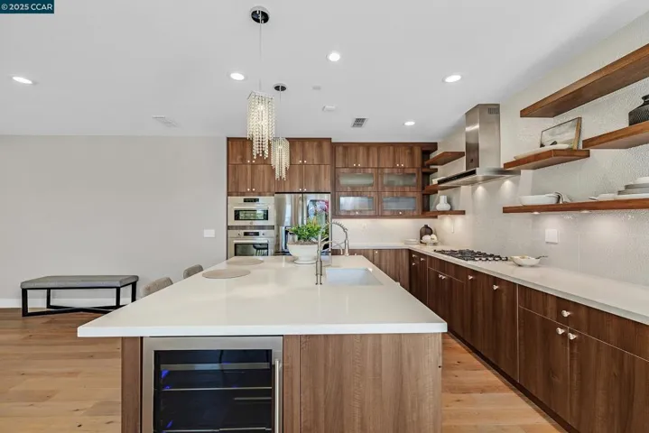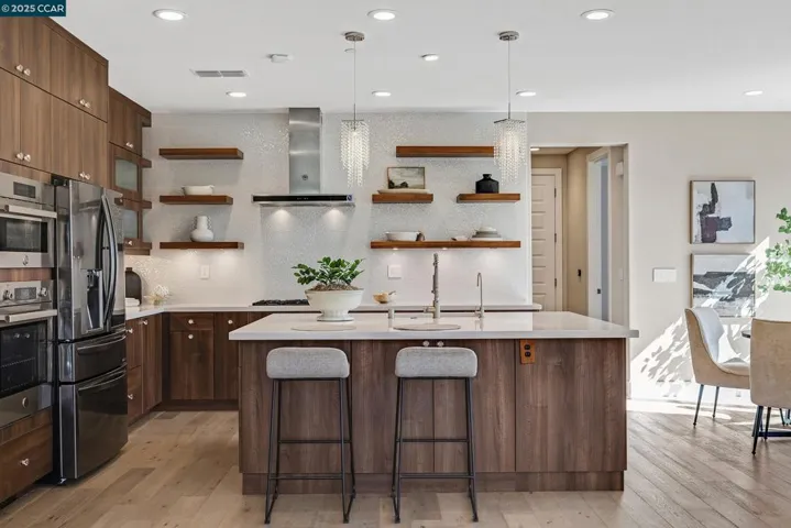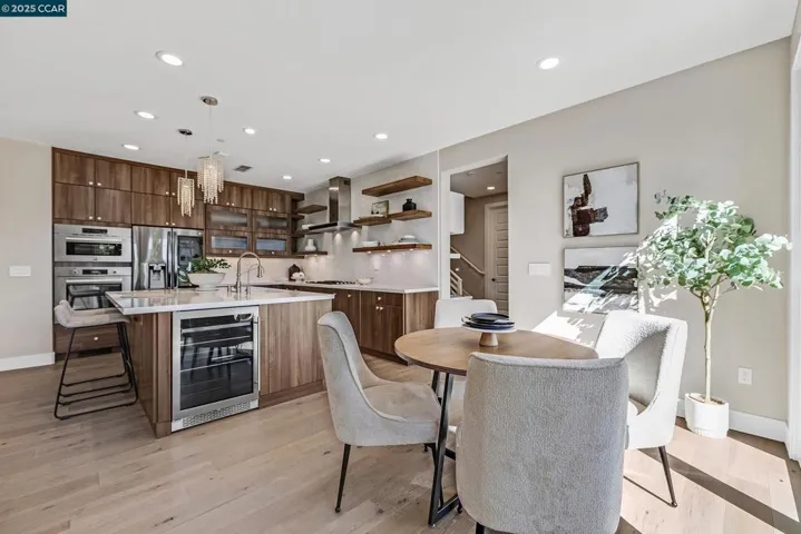 Experience luxury living in the prestigious gated community of Wallis Ranch with this beautifully upgraded two story end unit that offers privacy, natural light, and breathtaking views. Featuring four bedrooms and three and a half bathrooms across 2,052 square feet, the home includes a full bed and bath downstairs with a custom murphy bed, a built-in office desk, custom-made California closets, and a custom pantry under the stairs. The redesigned kitchen boasts custom cabinetry, high-end appliances, and a seamless connection to the outdoors through a stunning Lacantina bi-fold door that opens the entire wall to the private yard. Modern conveniences abound with a fully owned solar system, EV charger, water softener, water filter, smart home technology for thermostats, lights, shades, and garage door, as well as an ADT alarm system ready for activation. Every detail has been carefully considered to maximize comfort, style, and functionality. Residents of Wallis Ranch enjoy resort-style amenities including a clubhouse, pool, spa, gym, parks, walking trails, and a community garden, all while being close to top-rated schools, shopping, dining, and commuter routes. This move-in-ready home is the perfect blend of elegance, innovation, and convenience.