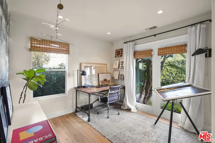 Discover your private Spanish Modern style gated oasis in the heart of Melrose Village, just a short walk to restaurants and parks. Oak hardwood floors, abundant natural light, and carefully chosen design details create a welcoming, modern vibe.The floor plan strikes the perfect balance, with the chef’s kitchen enjoying the spotlight, connecting the cozy living spaces to the outdoors for al fresco dining and entertaining.The primary suite is a spacious retreat with spa-like bathroom with a picture window and oversized shower. The primary suite features French doors leading to the secluded backyard. The outdoor areas are a generously sized patio, a front yard zen space, and a lush grassy yard cocooned by trees for that extra privacy. The two car garage can be used as additional entertaining space with plenty of parking behind the gates. This home is not just a residence, it’s a vibe!