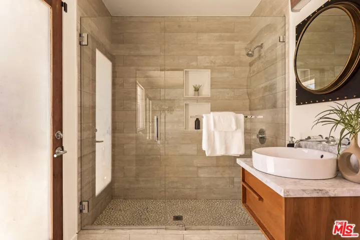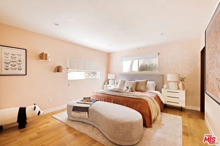 3019 Surry Street is a true contemporary charmer located in the coveted Ivanhoe School District. Set behind soaring trees that offer both beauty and privacy, this expansive 4-bedroom, 5.5-bath home boasts 3,457 square feet of thoughtfully designed living space. An inviting front porch leads into sunlit interiors, where dramatic skylights and warm wood floors define the open-concept layout. The spacious living room with a fireplace flows effortlessly into the formal dining area. At the heart of the home lies a chef’s dream kitchen, featuring sleek modern cabinetry, high-end appliances, a wine cooler, a bread warmer, and an oversized eat-in island that comfortably seats five or more. A private, luxurious primary suite with direct access to the pool occupies one wing of the home and is situated near other well-appointed guest rooms, along with an additional primary suite option that also offers a spa-inspired designer bathroom. Additional highlights include a bonus den with casual dining space ideal for both entertaining and everyday living, a dedicated office, and a three-car garage. Indoor living transitions seamlessly to the outdoors through large glass doors, opening to a resort-like backyard with a covered patio, sparkling pool, open-air dining area, and lush lawn. Ideally located in the heart of Los Feliz – close to top restaurants, entertainment, and parks – 3019 Surry Street embodies the best of California living.