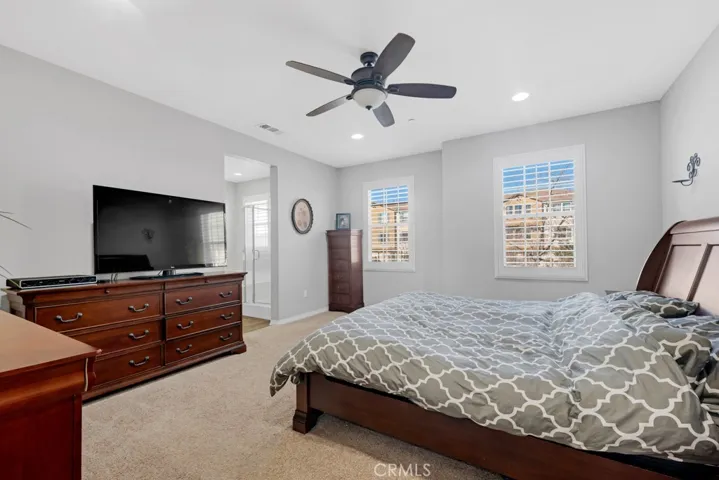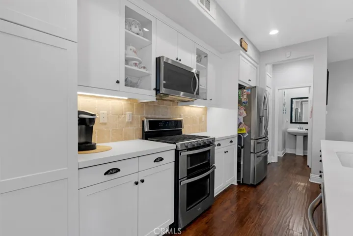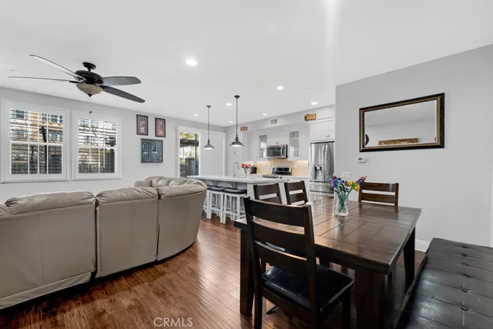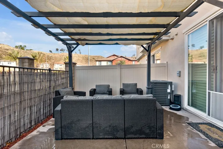 This Stunning Townhome in the Gated River Village Community of Santa Clarita offers a Spacious and Modern Living Space. The Property Offers Three Bedrooms and Two and a half Bathrooms with Approximately 1690 Square Feet. The Downstairs Area includes a Living Room, Galley Kitchen, Dining Area and a Half Bathroom. The Kitchen is equipped with Stainless Steel appliances, Quartz Counter-tops, White Cabinets, and a Pantry-Closet. Laminate Floors run throughout the Downstairs and Upstairs, along with White Shutters for a Clean and Contemporary look. Moving Upstairs you will find a Large Office Niche, an Additional Counter Area with Cabinets perfect for Storage Capabilities, Laundry Room, the Primary Bedroom and Full Bathroom which Includes a Large Walk in Closet, Dual Vanity Sinks, Separate Tub & Shower, and White Cabinets with a Quartz countertop. There are Two Guest Bedrooms and another Guest Bathroom with Dual vanity Sinks, a Quartz Counter top, White Cabinets, and a Tub-Shower. The Laundry Room Upstairs provides Convenience for Household chores. Residents can Enjoy the patio for Relaxation while Sitting under the Pergola on a hot Summer day, or take a short Walk across the street to the Beautiful Resort Style Pool, Spa or take the Children to Enjoy the Park with Play Structure. The Condominium’s Location Offers easy Access to Nearby Shops and Restaurants, while being Nestled in the Beautiful Hills of Santa Clarita. Overall this Property combines Comfort, Style, and Convenience making it a Desirable place to call Home in Santa Clarita’s River Village Community.
