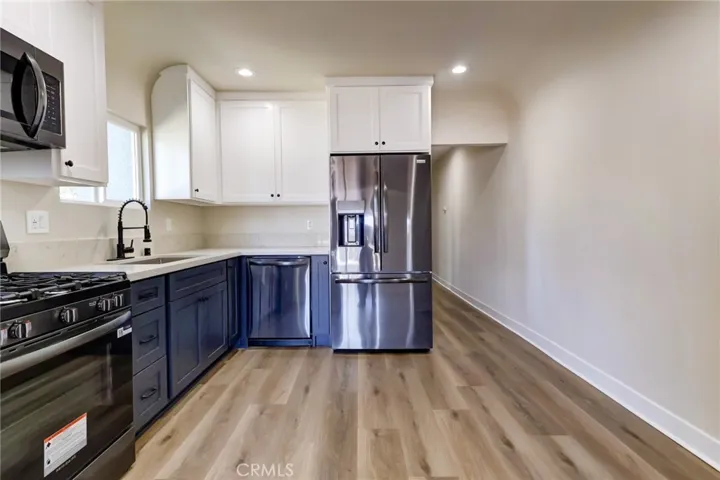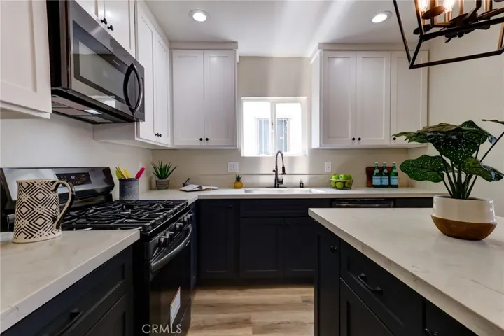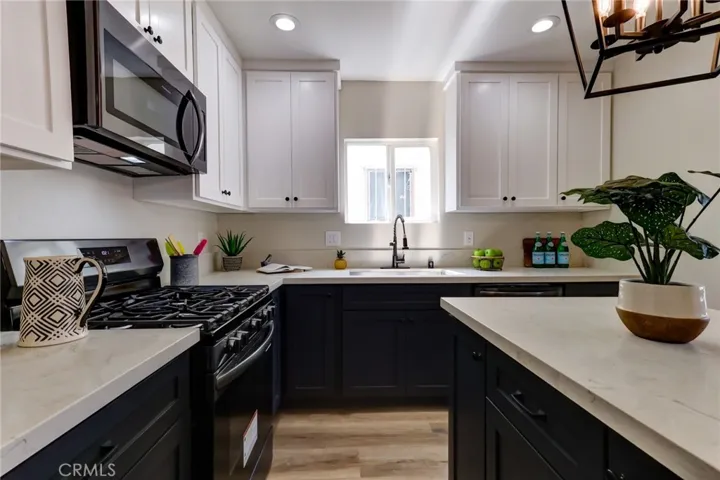 Unit One: A bright and modern 3-bedroom, 1-bath home featuring an open floor plan, brand-new kitchen with quartz countertops and new appliances, updated flooring, and a sleek bathroom with designer finishes with interior laundry room.