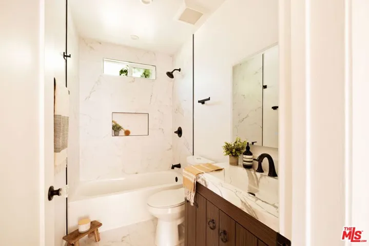 Welcome to the most charming house in all of Pasadena! This picture-perfect 3-bedroom, 2-bath home with a sparkling pool is the ultimate blend of classic LA character and stylish modern upgrades. From the moment you step inside, you’re greeted by natural light and inviting energy. The sweet living room with a stunning tiled fireplace is the perfect spot to unwind or entertain in style. The open-concept layout flows beautifully into a chic dining area and updated kitchen, where Calcutta Gold Quartz countertops, sleek stainless steel appliances, and a cozy breakfast bar create the heart of the home. Swing open the French doors and step into your own private oasis: a covered patio made for al fresco dinners under the stars, and a lush backyard designed for soaking up the SoCal sun. Whether you’re diving into the sparkling pool, relaxing in the spa, or hosting unforgettable gatherings, this outdoor space delivers resort vibes all day long. The serene primary suite is a dream retreat, featuring a spacious walk-in closet and an en-suite bathroom with dual vanities and elegant backlit mirrors. Two additional bedrooms are down the hall one is extremely spacious, the other features the most beautiful natural light in the house. The second full bathroom offers a tub/shower combination unit, perfect for your family and friends to enjoy. Tons of extras elevate this home: a detached 2-car garage with a driveway with new automatic gate offers ample parking and/or flexible bonus space, and a California Basement is perfect storage for those boxes you don’t need everyday. If you’ve been searching for a move-in-ready home with soul, style, and serious curb appeal this is it. Lush, lovely, and full of life, this Pasadena treasure is ready for its next chapter. Welcome home!