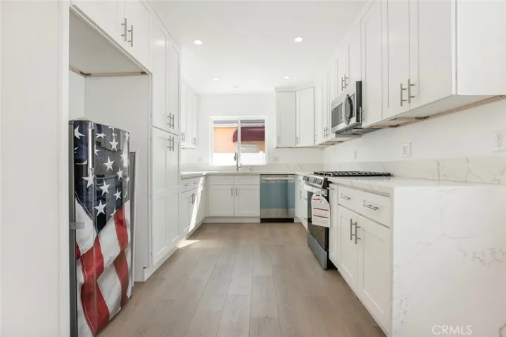 This home boasts laminate flooring, recessed lighting, and central A/C for year-round comfort. The brand-new kitchen is a chef’s dream, featuring quartz countertops, a new gas range, built-in microwave, dishwasher, and stylish finishes.