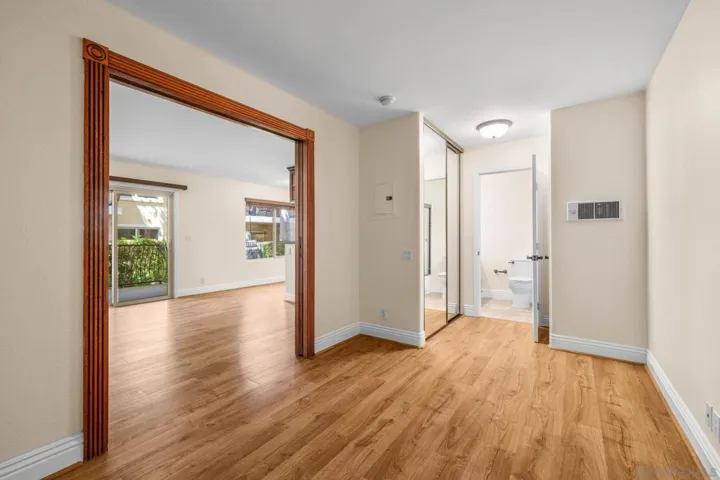Charming 1 Bedroom 1 Bath home in Villa Tuscana in La Jolla Village! This gorgeous remodeled move in ready condo is located in the quiet interior of the complex on the first floor, no stairs! Step inside to discover a welcoming open layout, highlighted by a dine-in bar perfect for casual gatherings. The interior features a remodeled Kitchen with granite counters and new luxury vinyl plank floors providing a sophisticated yet comfortable living space. Your serene primary suite features pocket doors for added privacy with the convenience of a full size stackable washer and dryer tucked neatly in the outdoor closet on the balcony. 1 assigned parking space. The community enhances your living experience with amenities which include a sparkling pool and clubhouse. Minutes to La Jolla Beaches, Trader Joes Shopping center, restaurants, UCSD and access to the MTS trolley for downtown events