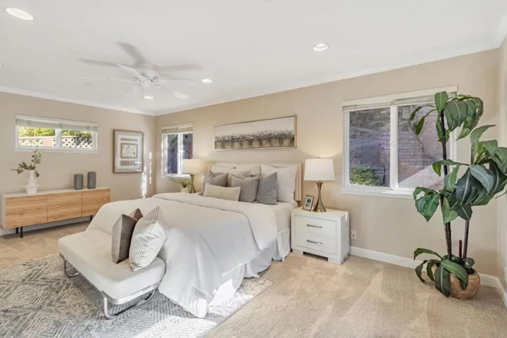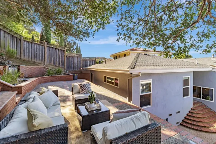 Magnificent 5-bedroom estate located in the highly desirable neighborhood. As you step inside, you are greeted by an abundance of natural light pouring through a huge picture window, illuminating the elegant living room & dining area. The heart of the home is the open chefs kitchen and great room combo with a vaulted ceiling, skylights, high-end cabinets, granite countertops, massive kitchen island, surround sound for 3 TVs, perfect for both luxury daily living and grand-scale gatherings. The secluded master suite completed with a den, spacious bathroom with a bathtub for ultimate relaxation. On the opposite side of the home, a separate wing has 4 bedrooms, 2 with en-suite, hallway bathroom with a jacuzzi, providing privacy and ample space for a large family or guests. Sprawling over 14,000 sf lot. One-of-a-kind backyard has an amazing cascading river waterfall that leads to the top of the hill with a panoramic view of the Bay. At the top is a venue features a Disneyland-inspired bar, TV, BBQ grill, a kitchen with a microwave, 2 refrigerators, a hot tub and even a toilet. Ideal location midway between San Francisco and Silicon Valley. This highly loved home is your personal sanctuary and the ultimate venue for hosting unforgettable events with views that will capture your heart.