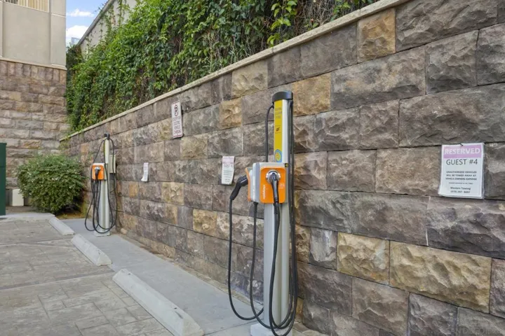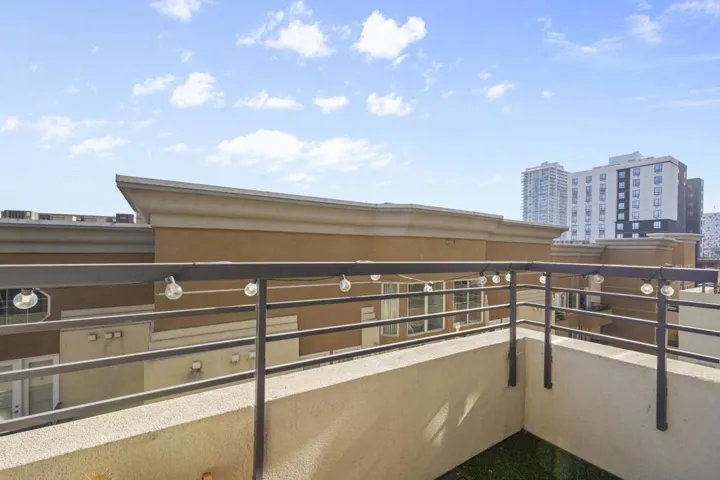 Live the Loft Life! A Rare Find in Union Square! Top-floor condo featuring a two-story loft design with soaring ceilings. Floor-to-ceiling picture windows flood the home with natural light, complete with upgraded motorized shades, both light-filtering and blackout. Open-concept floor plan with a contemporary brick accent wall, engineered hardwood floors, and a spacious kitchen with granite countertops, stainless steel refrigerator, and gas range. Step outside to your balcony and take in the skyline views – perfect for morning coffee or evening relaxation. Newer washer and dryer. One assigned parking spot. Cage storage in the garage. Union Square is a well-managed HOA that offers resort-style amenities: a gym, hot tub, sauna, community room, and electric car charging – ideally located in East Village—adjacent to City College, near restaurants, and Petco Park – easy freeway access (5, 94, 163). With major redevelopment underway in East Village, now is the time to buy. VA approved and ready for its next owner. Turnkey, ready to move in. Live the loft life today!