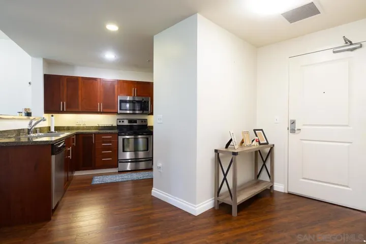 Urban Oasis Steps from Petco Park, Gas Lamp, Convention Center. This Condo features largest one-bedroom open floor plan in Park Terrace,10-foot ceiling, Large Living area, granite counter tops, updated bathroom and stacked washer/dryer, and a large private patio. Unit comes with one parking space located on the first parking level close to the elevators.
