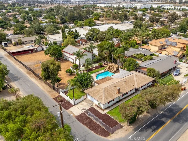 2 Homes – Discover this rare opportunity to own 2 homes on one expansive 0.78-acre lot, complete with horse facilities, a heated pool, and 50 paid-off solar panels to power both homes. FRONT HOME – 1,774 sqft. This beautifully remodeled 3-bed, 2-bath residence features a new 30-year cool roof, whole-house fan, Travertine tile floors, new carpet, fresh interior and exterior paint, upgraded interior doors, full replumb, and ceiling fans in the living room, dining room, and each bedroom. The stunning kitchen features custom Hickory cabinets, Corian countertops with full backsplash, Corian sink, Viking 6-burner gas cooktop with Proline hood vent, and high-end GE Profile appliances: double convection ovens, dishwasher, and refrigerator. The family room features a wood-burning fireplace. The dining room and living room each feature a sliding glass door to the backyard. The main bedroom includes mirrored closet doors, sliding glass door to the backyard, and a remodeled ensuite bathroom. Both remodeled bathrooms include oak pullman vanities with soft-close doors, quartz counters, and designer shower tiles. The main bath has a custom glass shower door, and the hall bath has a new enamel bathtub. The 2-car garage is drywalled and features custom cabinets, a workbench, and a dedicated laundry room with custom cabinets and laundry sink. The backyard feels like your own private resort with a heated pool and spa, rock waterfall and slide, shuffleboard court, regulation horseshoe pits, and a covered patio surrounded by lush landscaping and citrus trees. SECOND HOME – Built in 2008 with permits, this luxurious two-story residence is set back from the first home with its own automatic gated entrance and wrought iron fencing. The lower level features a 1,500 sqft 4-car garage with automatic garage doors, a half bath, a 15 ft-high bay for RV or boat storage, a double-wide bay, and a workshop bay with cabinets. Upstairs, the 1,000 sq. ft. living area features a guest bath, full kitchen, island with sink, pantry, living room, and a master bedroom retreat with large ensuite bath and walk-in closet. A large bonus room provides space for an office, storage, or guest bedroom. Outdoors, the property includes horse corrals, a 3-stall shed row barn, feed room, breezeway, 12’x12’ tack shed, 53’ storage container, shed with power, and mature avocado trees. Whether your goal is multi-generational living, generating rental income, or simply enjoying extra space, this estate has it all.