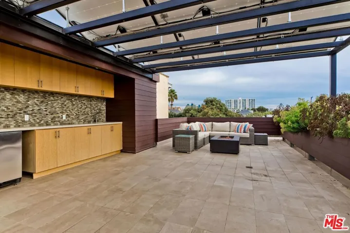 Steps from Prime Santa Monica Beach. Stunning modern home, available now. On-site parking for 3+ cars. State-of-the-art masterpiece. A total of 5 BR openfloor plan allows an easy flow from Great Room to formal dining to magnificent entertainer’s kitchen that includes top tier Wolf and Subzero appliances and over-sized island. The kitchen opens to the sophisticated and drought-resistant landscaped backyard with high end BBQ Counter. Sliding pocket doors open completely to an outdoor side deck dining area, ideal for parties al fresco. The ground floors also has an en-suite bedroom and powder room. Downstairs features a guest room, laundry room, gym/media room, kitchenette, an enormous storage room for bikes and surfboards. Second floors with 3 en suite bedrooms + laundry rm. Luxe master has treetop views, walk-in closet and 5-star bath. Huge rooftop deck with fire pit and ocean view hot tub. A must see!