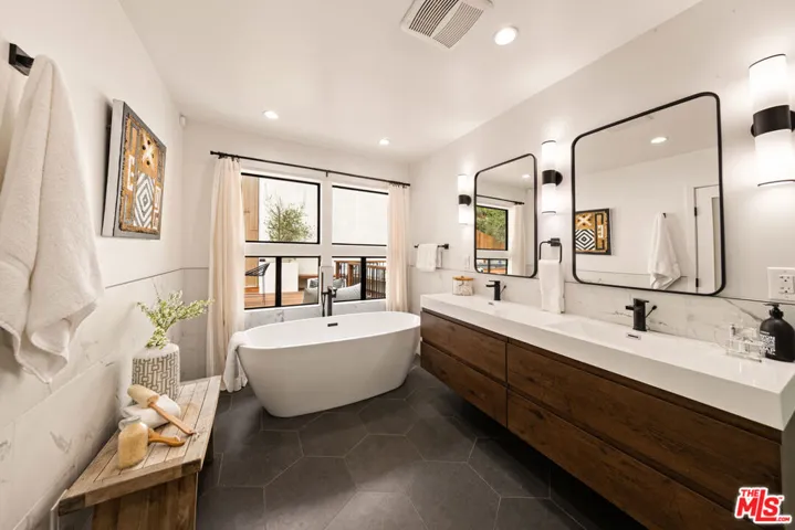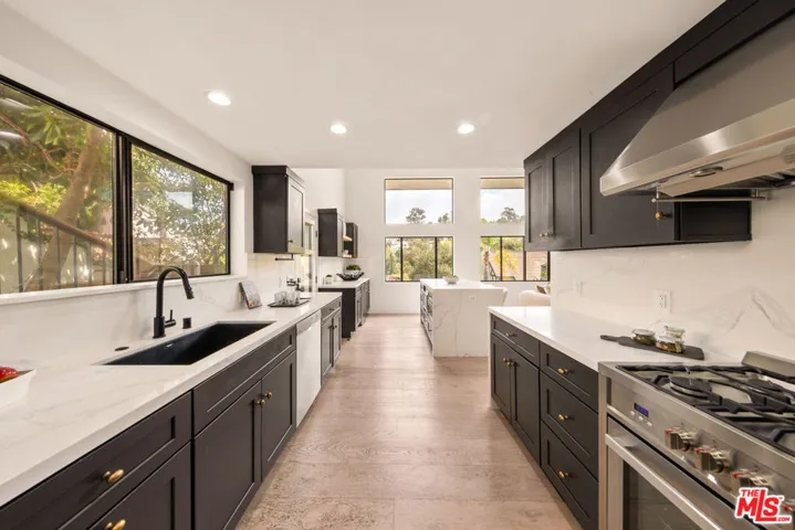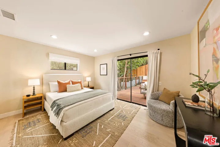 This stunning home will be featured on HGTV show “House Hunters”. Tucked away in the serene Hollywood Hills, this recently remodeled turn-key home offers peaceful hillside living with sweeping canyon and city views yet sits just minutes from the energy of the city. Enjoy the calm of your own retreat while being only 10 minutes from world-class dining, nightlife, and entertainment. Universal Studios and CityWalk are nearby, while the Hollywood Bowl, Runyon Canyon, Studio City, and all of Hollywood are moments away. Inside, the open, airy layout is designed for both relaxation and entertaining. Design features double height living room, wood beam ceiling, oversized windows that flood the home with natural light and frame the views. Clean modern palette, stone slab style backsplash, oak open shelves, matte black cabinetry and hardwood flooring throughout. Truly a move-in ready house with seamless indoor-outdoor flow leads to multiple private terraces. A stunning newly built deck with a hot tub and fire pit creates the perfect setting for unwinding or entertaining under the stars. The chef’s kitchen, generous living spaces, and a primary suite with spa-like bath combine comfort with sophistication. This property is ideal for those who value both convenience and privacy, prioritizing thoughtful design, breathtaking views, and a true turn-key experience.