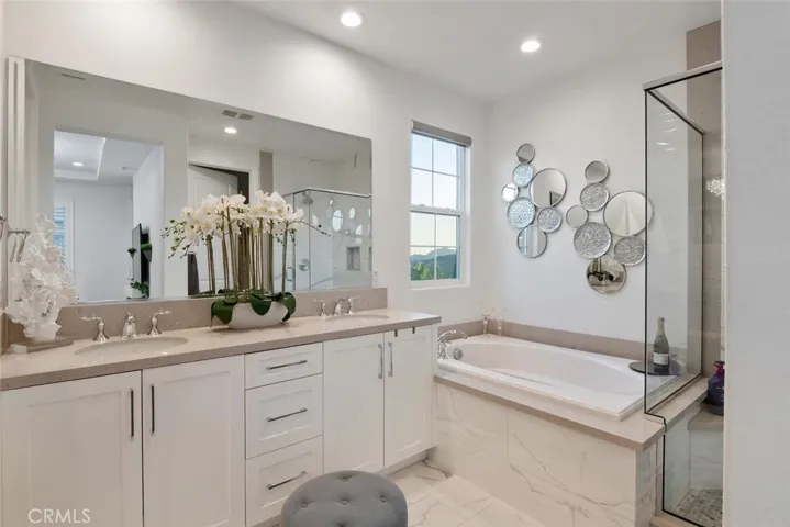 NEW PRICE REDUCTION! 180 Degree VIEW Home in the prestigious Guard gated community of The Canyons. Experience luxury living in the most sought-after community of Porter Ranch with this beautifully upgraded 4-bedroom, 3-bath home situated on a premium view lot. Inside, enjoy an open-concept layout with a stunning quartz waterfall island, upgraded flooring throughout, and a resort-style master bath complemented by a custom walk-in closet. The home is further enhanced with a spacious loft, stainless steel appliances, washer and dryer conveniently located on the second floor, and custom-made high-quality shutters built throughout. Elegant lighting fixtures and well-kept landscaping add to the home’s appeal, while leased solar offers energy efficiency. The garage provides ample storage with built-in cabinets, and outside you’ll find a private entertainer’s paradise featuring a relaxing jacuzzi, cozy fire pit, and stylish seating areas—all set against breathtaking views. This home blends elegance, comfort, and modern upgrades, all within a community known for its family-friendly atmosphere and exceptional sense of community. Residents also enjoy resort-style amenities including a sparkling pool, spa, clubhouse, BBQ area, and splash pad all within a 24-hour guard-gated community. With top-rated schools, scenic trails, and easy freeway access nearby, this exceptional property offers luxury living at its finest.