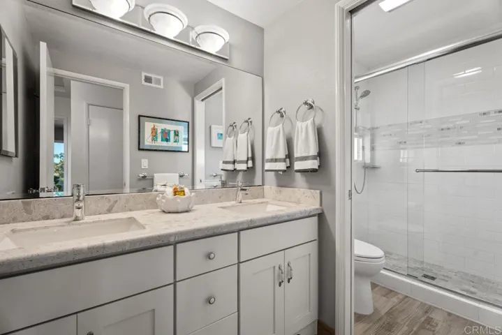 DRAMATIC PRICE REDUCTION! Bring your buyers now! This home offers stunning panoramic white water ocean and San Elijo Lagoon views. Situated on a rare 1/3 acre corner beautifully landscaped lot, this warm and stunning family home includes a large flat backyard for family fun and adult entertainment with built-in barbecue grill, several outdoor seating areas, a spa with ocean views and water features. Inside this remodeled home features 5 bedrooms and 3 full baths, with a first floor containing an expanded family room, enlarged dining room, formal living room with fireplace, an indoor laundry room with washer & dryer, and a convenient downstairs bedroom with remodeled full bath. Upstairs the enormous primary suite captures breathtaking ocean and lagoon vistas with spa inspired jacuzzi bath & shower, walk-in closet and an expansive retreat area for ocean sunset viewing. Three additional bedrooms and remodeled bathroom complete the upper level. Additional highlights include a newer washer & dryer, 3 car attached garage with EV charger, huge extra storage in added garage attic, owned solar system and impeccably maintained freshly painted exterior. Professionally staged to showcase its timeless elegance and is move-in ready, this warm and inviting home is located near award winning schools, boutique shops and top restaurants. Beaches are just minutes away, creating the ultimate blend of luxury, convenience and coastal living. This is truly a rare find!