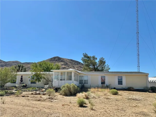 PRICE DROP TODAY – Welcome to the north east side Apple Valley 4 bedroom, 3 bath manufactured home on permanent foundation. This property comes with a detached metal garage/workshop/building, with car lift, extra storage and an office inside. Sitting on over 2 acres the buyers have plenty of room to build or have horses or livestock or add a pool. Seller had a new roof put on last year and a new septic, both less than a year old. The detached garage/workshop has plenty of space for parking RVs, boats, off roading vehicles or use for a home shop. The area is quiet and offers its own private well, FULLY PAID SOLAR, windmill, propane and has several sheds for storage plus awnings for parking or extra outdoor sitting area. There are rain gutters, fully grown shade trees and has a nice front porch for sitting and enjoying the fenced garden with mature flowering bushes and plants. The property is fully fenced, and the front gate is electric for convenience. The land is level and cleared off for a buyer to add extra buildings or build an off-road track or horse arena.